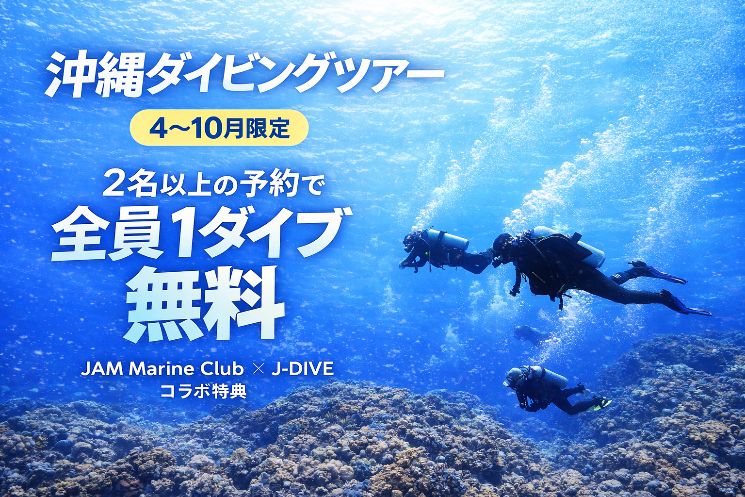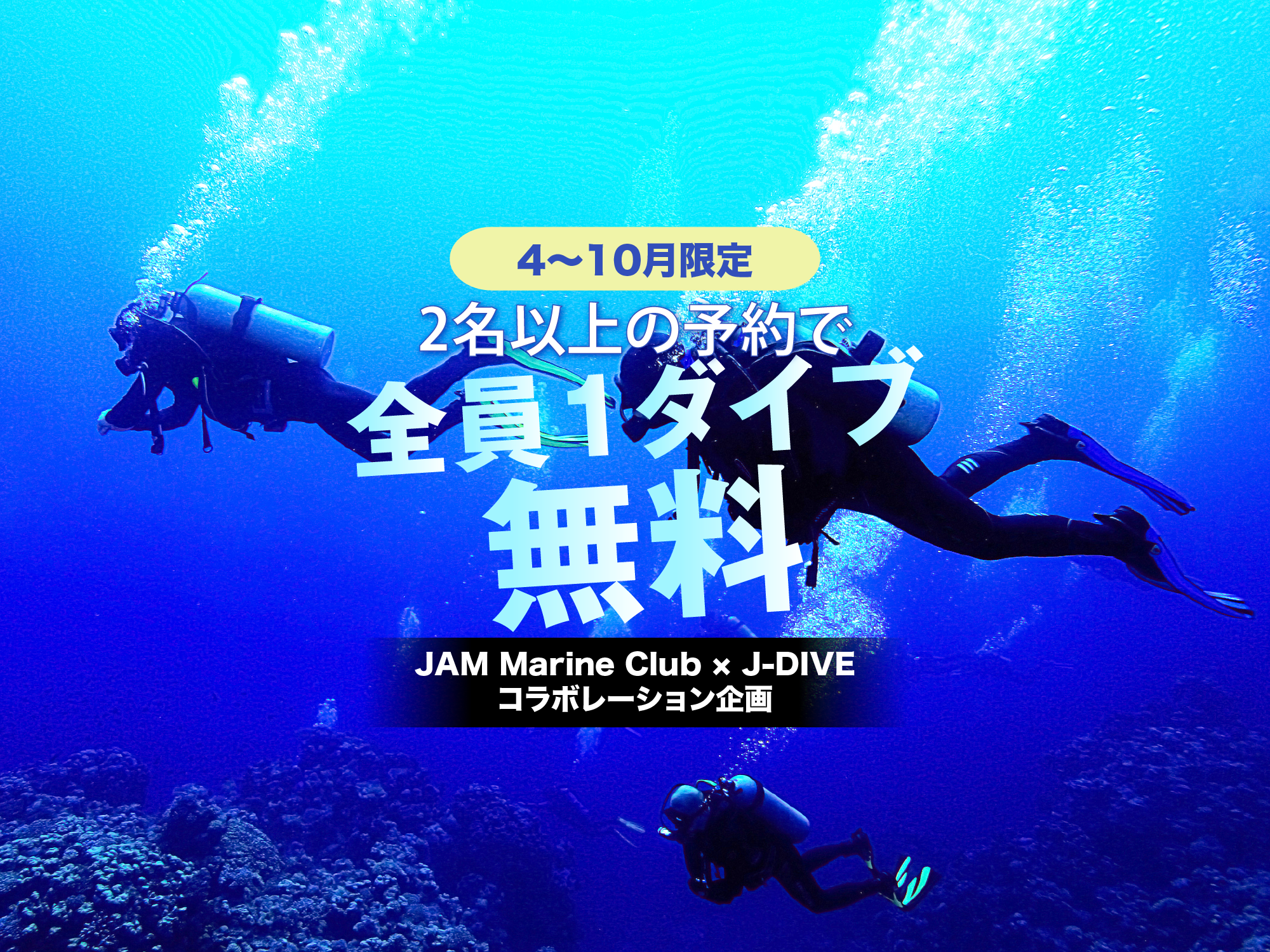 「JAM Marine Club × J-DIVE コラボレーション企画」2名以上参加で全員1ダイブ無料キャンペーン!